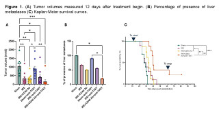 All IRE-treated groups showed smaller primary tumor volumes versus sham, with the greatest reduction after IRE+CD40 Ab+anti-TIGIT (Figure 1A). Flow cytometry demonstrated the largest reduction in regulatory T cells and the greatest increase in natural killer cells with triple therapy (not shown). These immune changes were associated with reduction in liver metastases on day 12 (Figure 1B). IRE+CD40 Ab+anti-TIGIT also improved survival over other groups with 22% complete responders (Figure 1C).