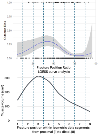 Figure 1 shows ACS incidence rates using a LOESS (locally estimated scatterplot smoothing) curve and mean muscle volumes associated to each of the 8 tibial segments.